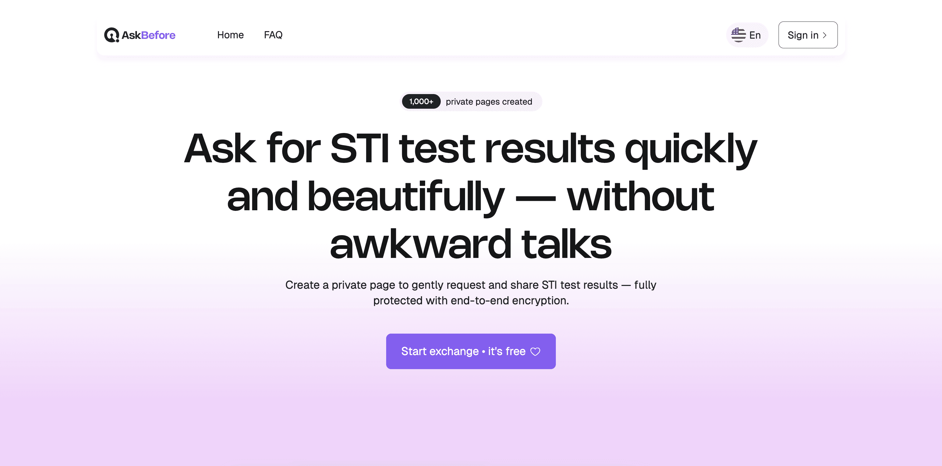 I led and launched AskBefore, a product that helps people request and exchange STI test results without damaging the emotional context of early relationships.